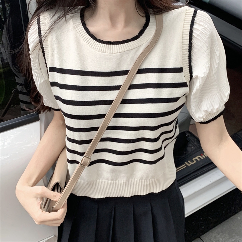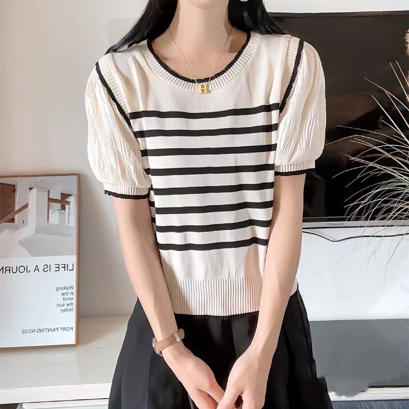 Blouse rajut import motif salur T8727