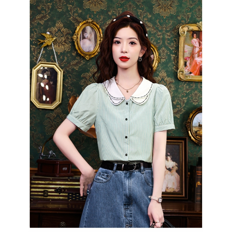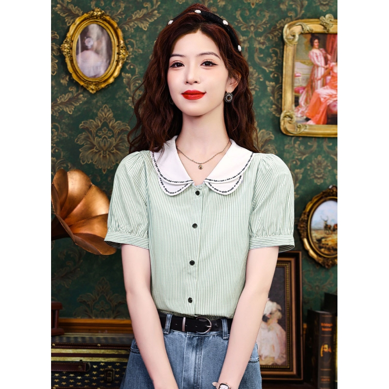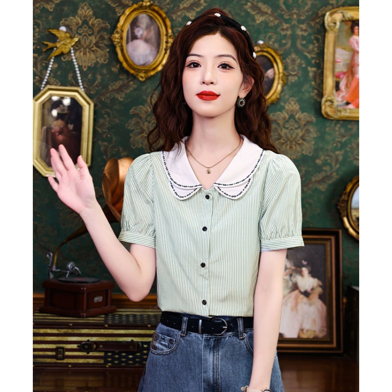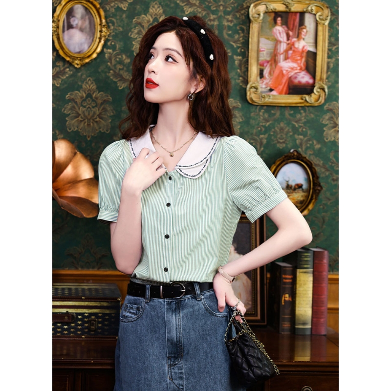 Kemeja wanita import motif salur T8748