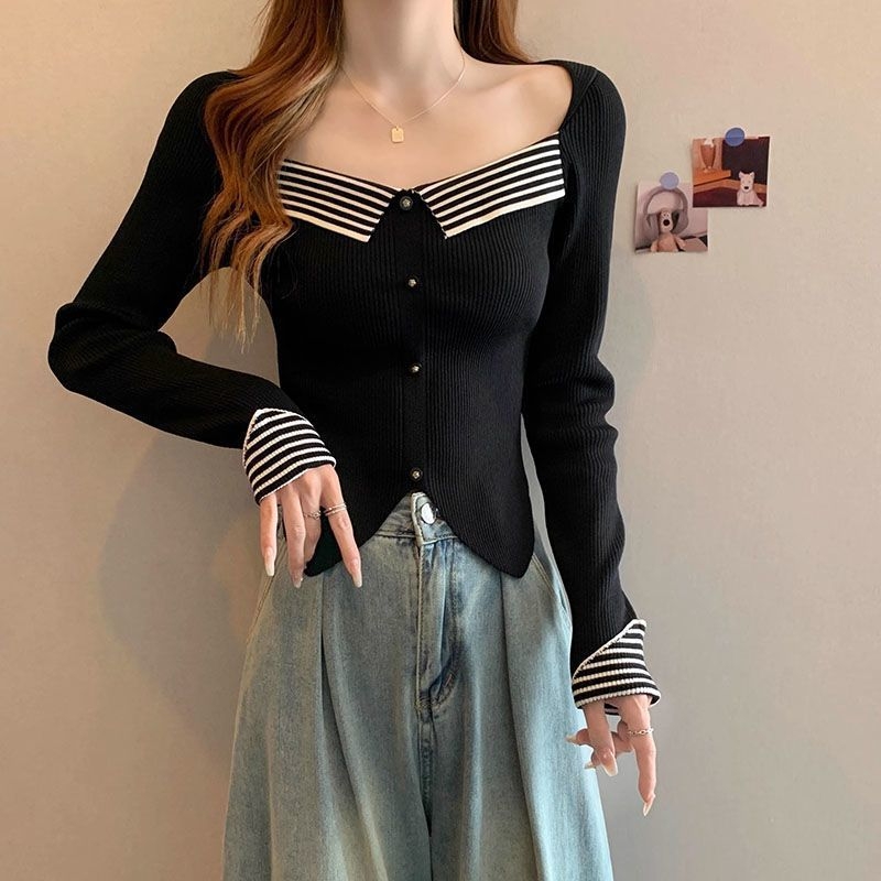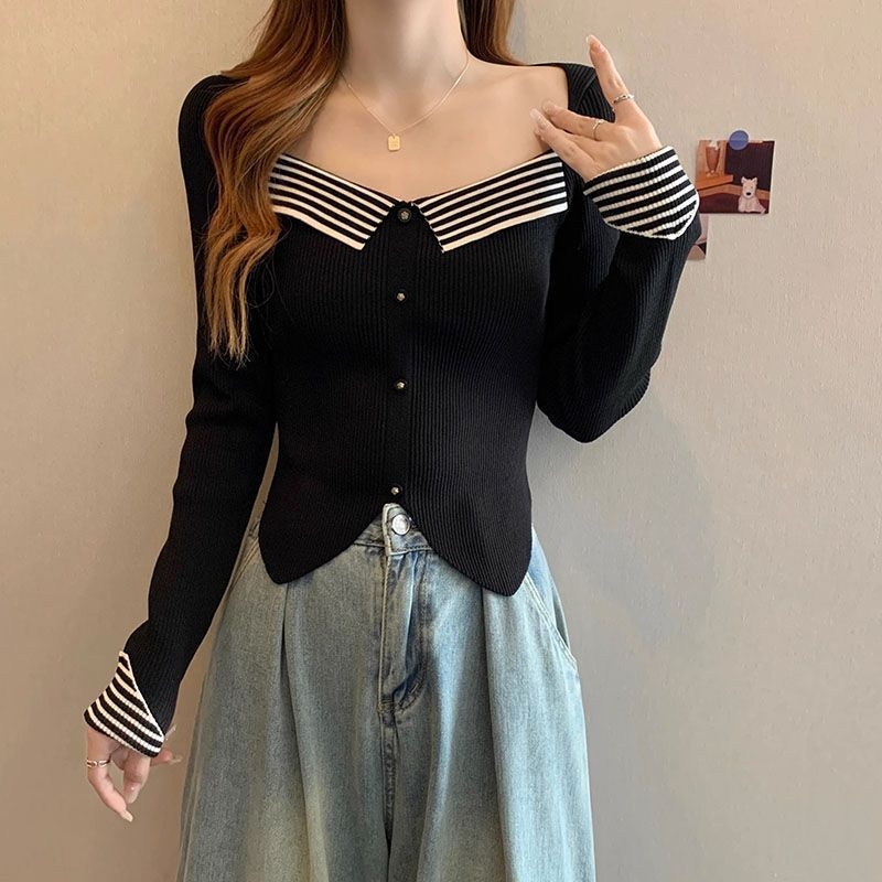 blouse rajut lengan panjang wanita import korea T8854