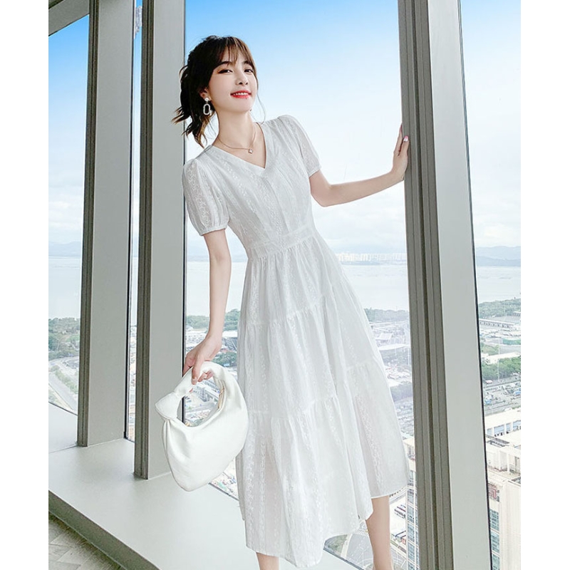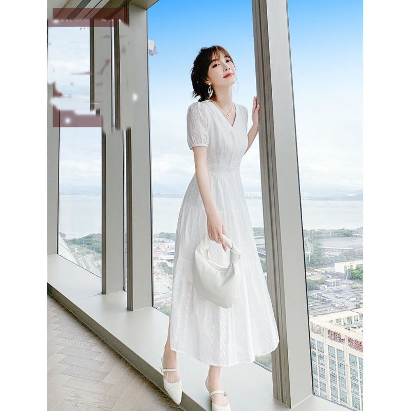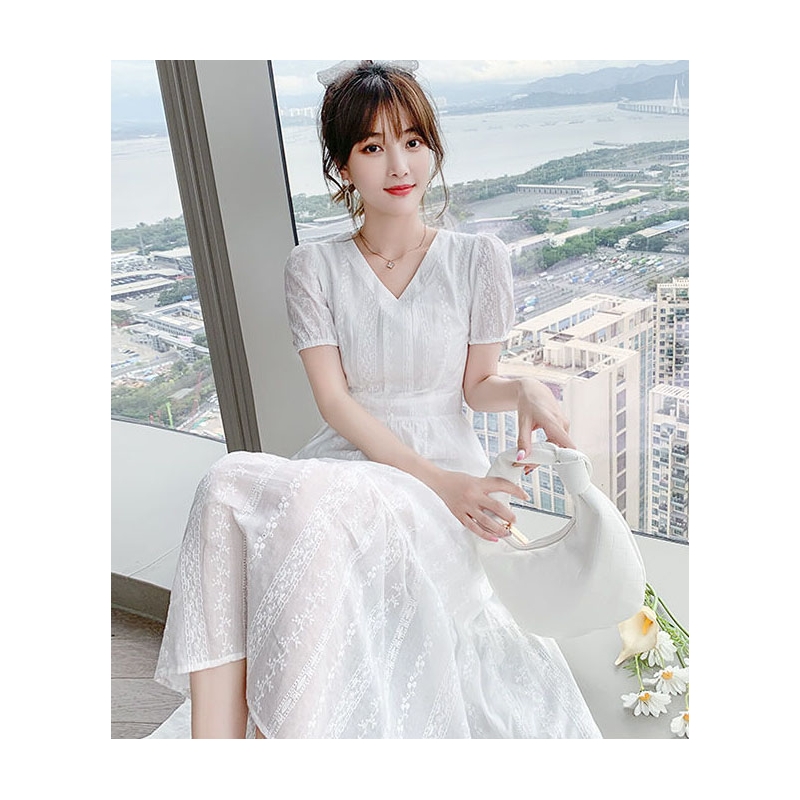 dress putih wanita korea import D8508