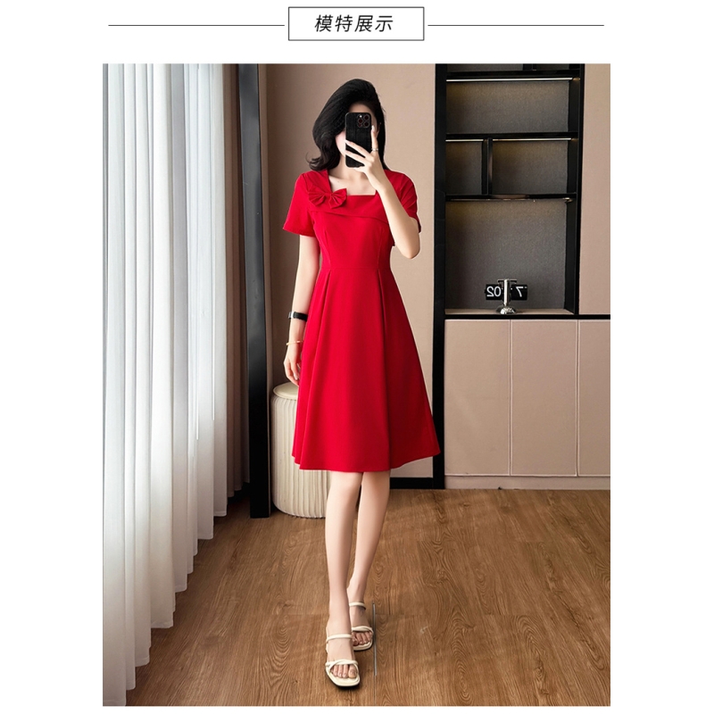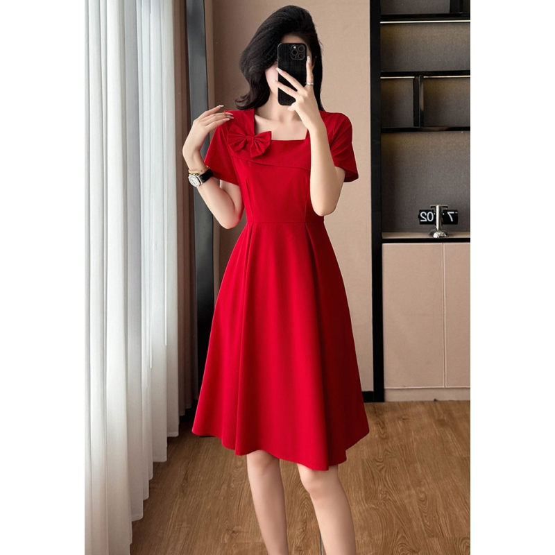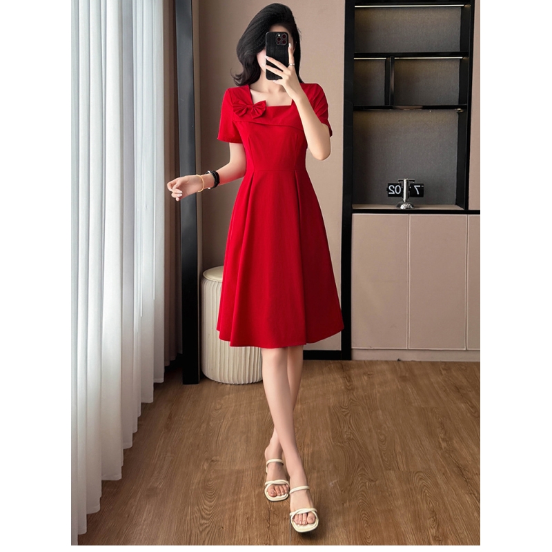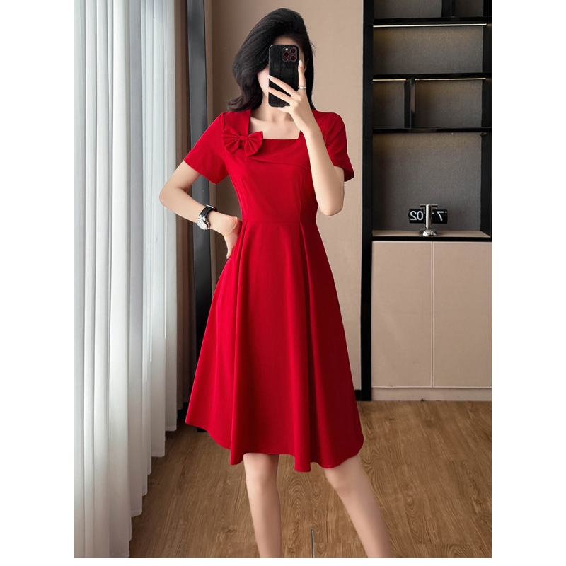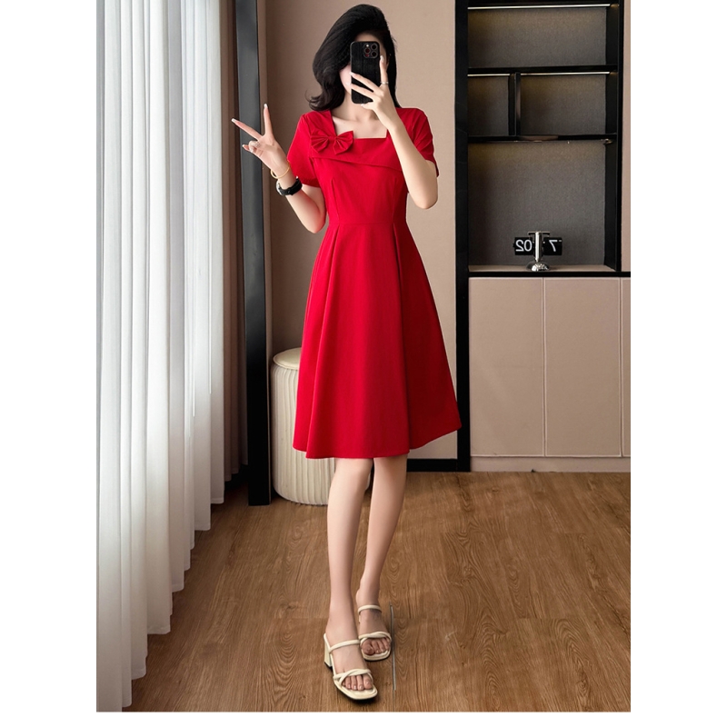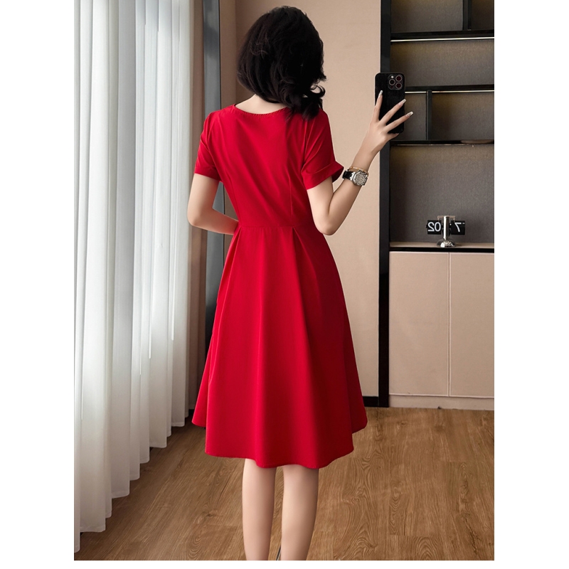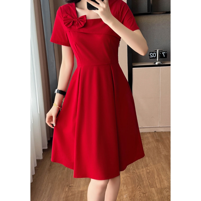 dress merah wanita korea import D8543