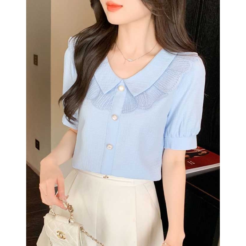Blouse wanita korea import berkerah T8976