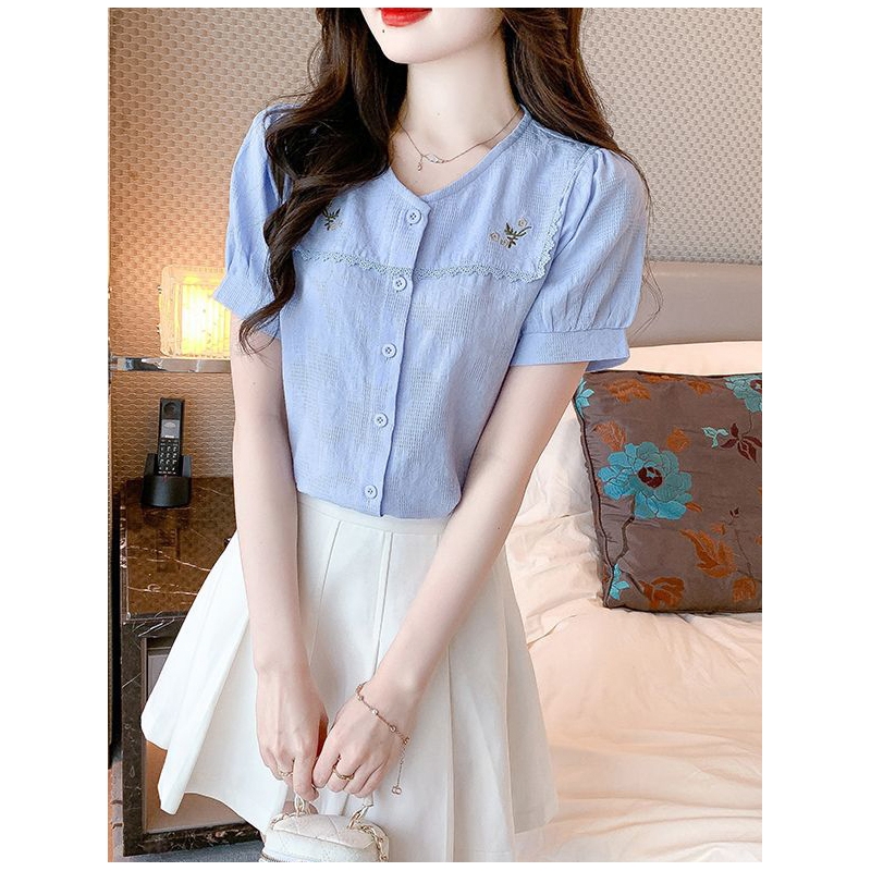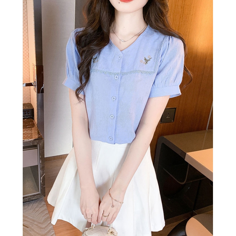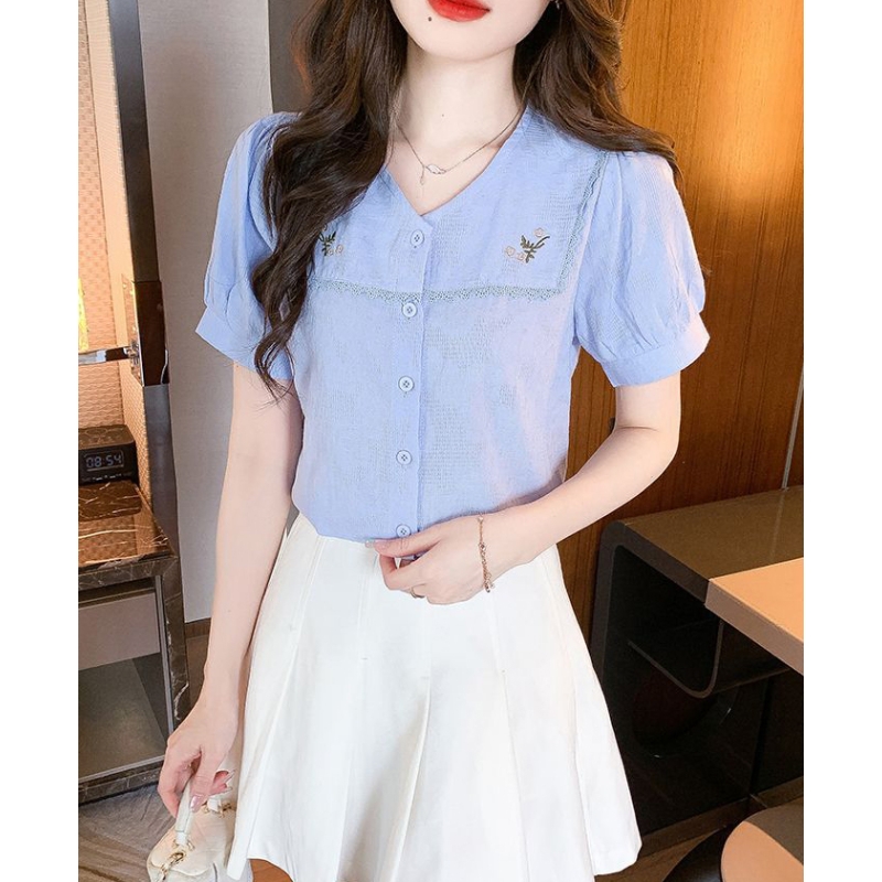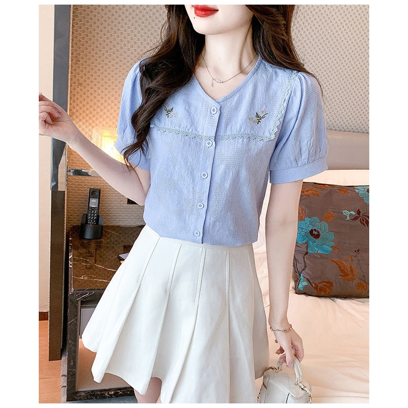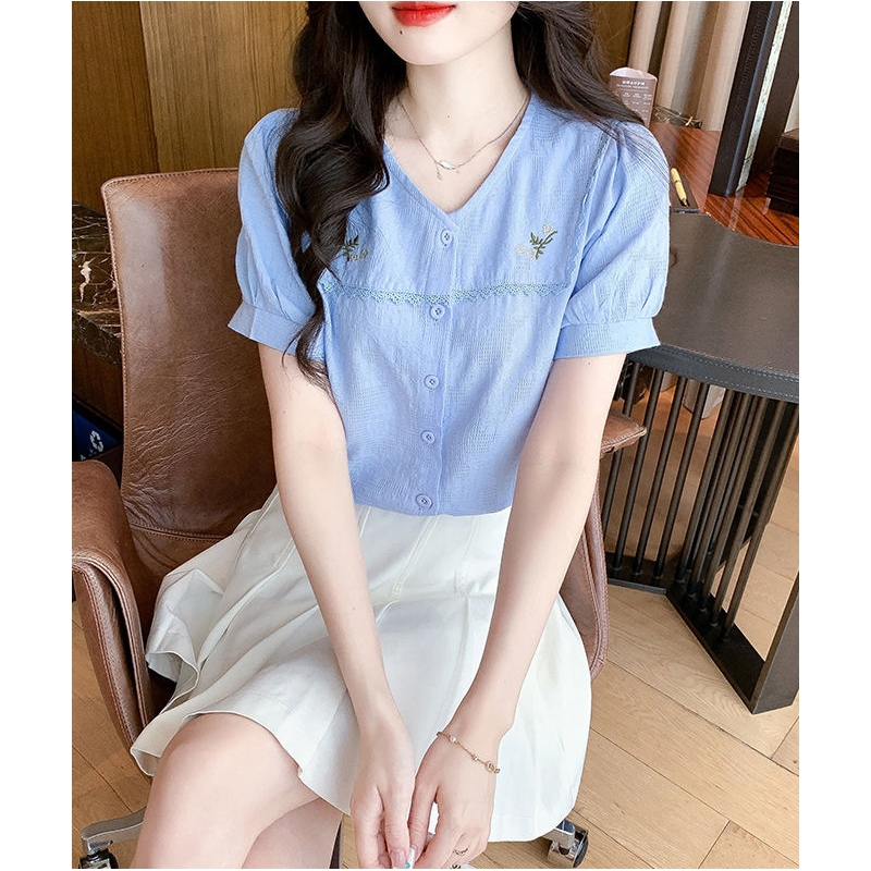 Blouse wanita korea import berkancing T8698