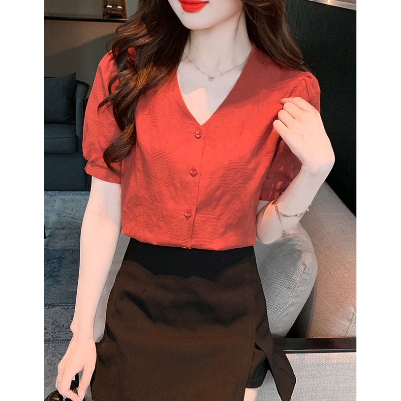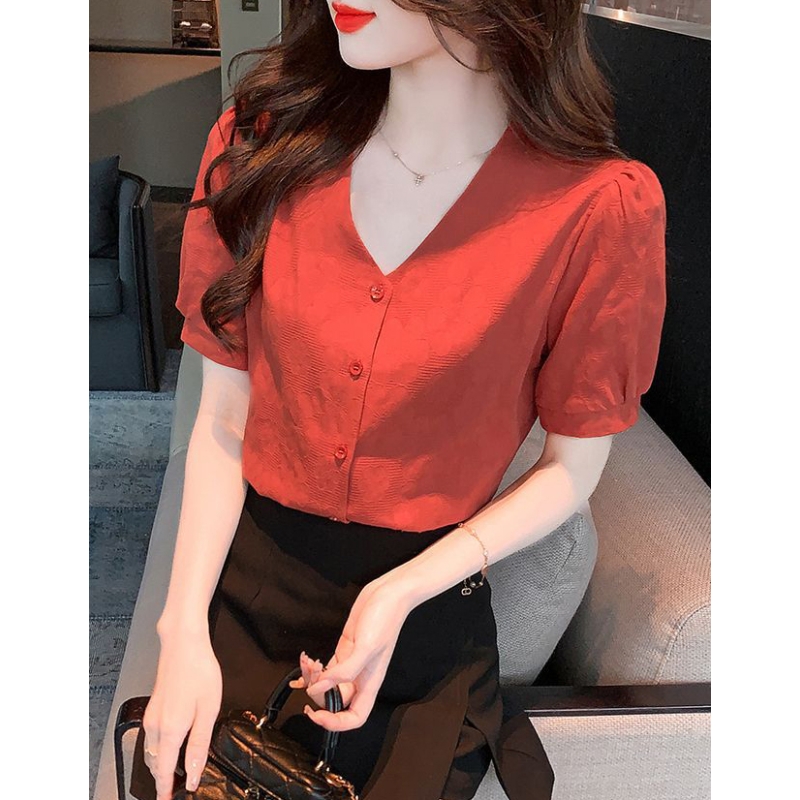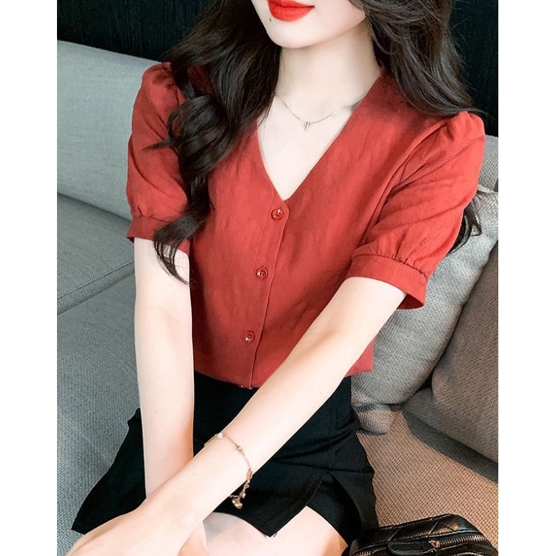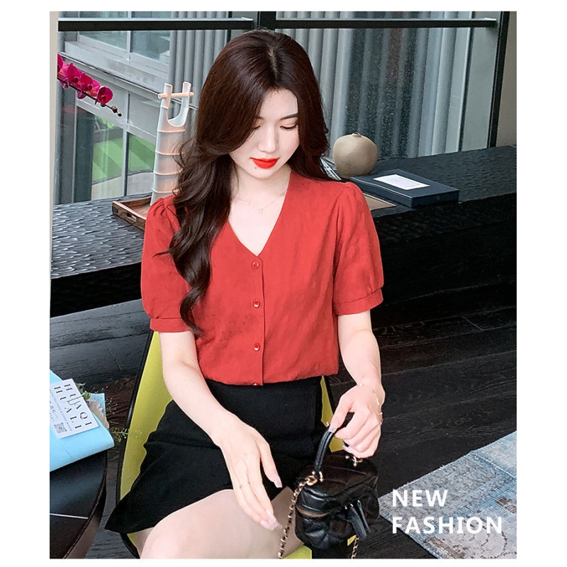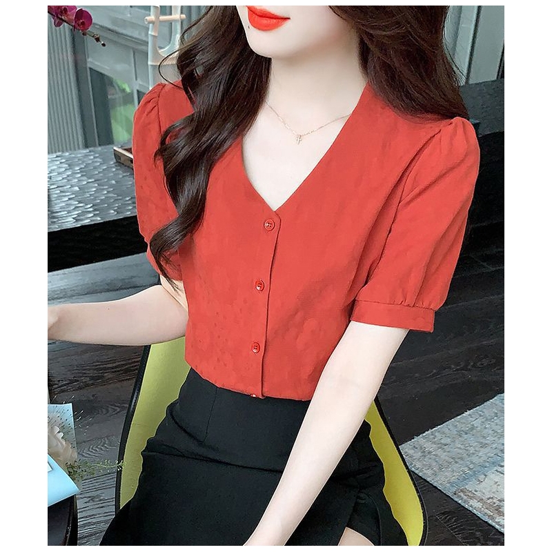 blouse wanita korea import v-neck T8710
