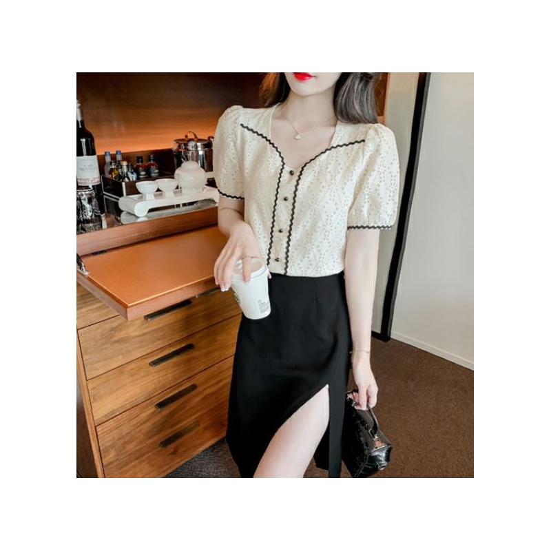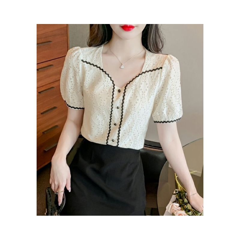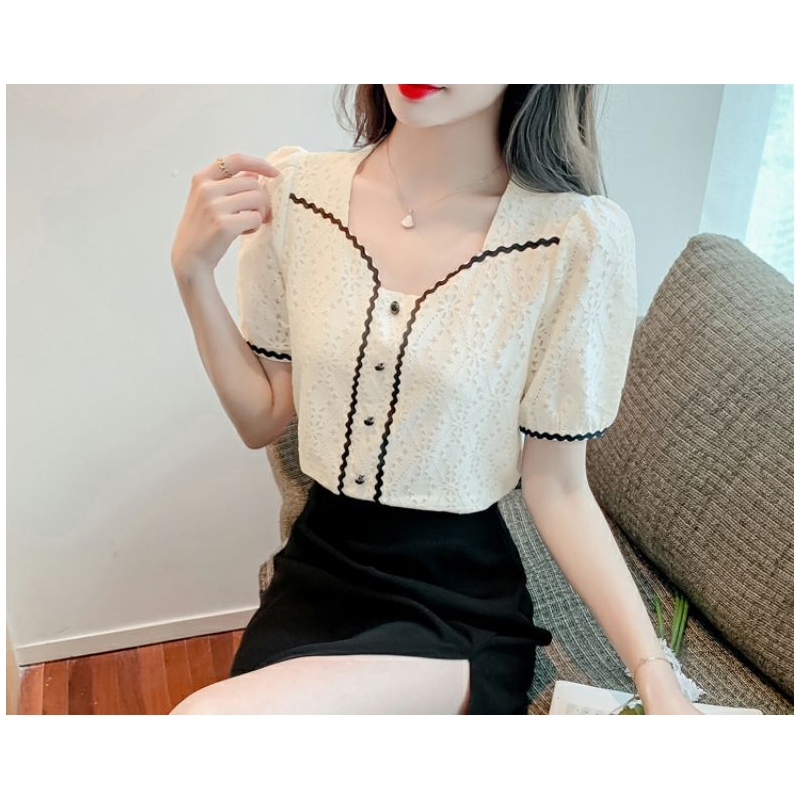 Blouse brukat wanita korea import lengan pendek T8724