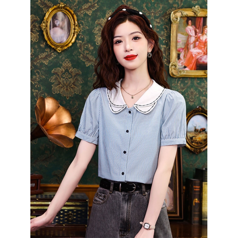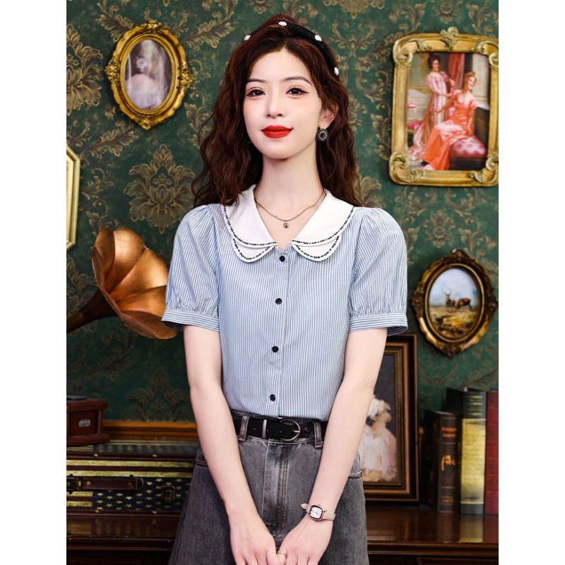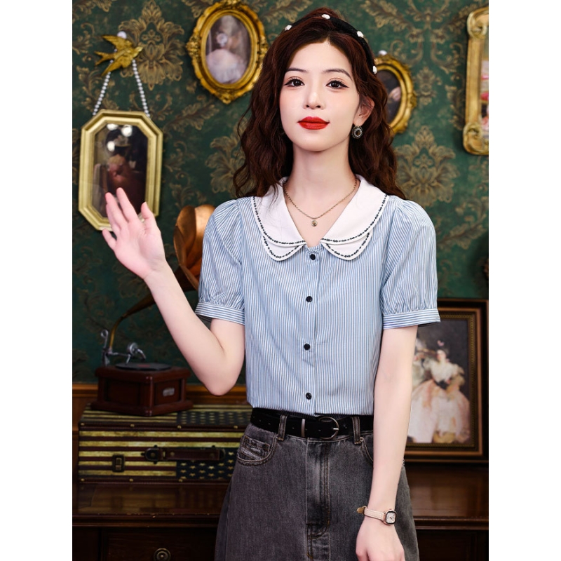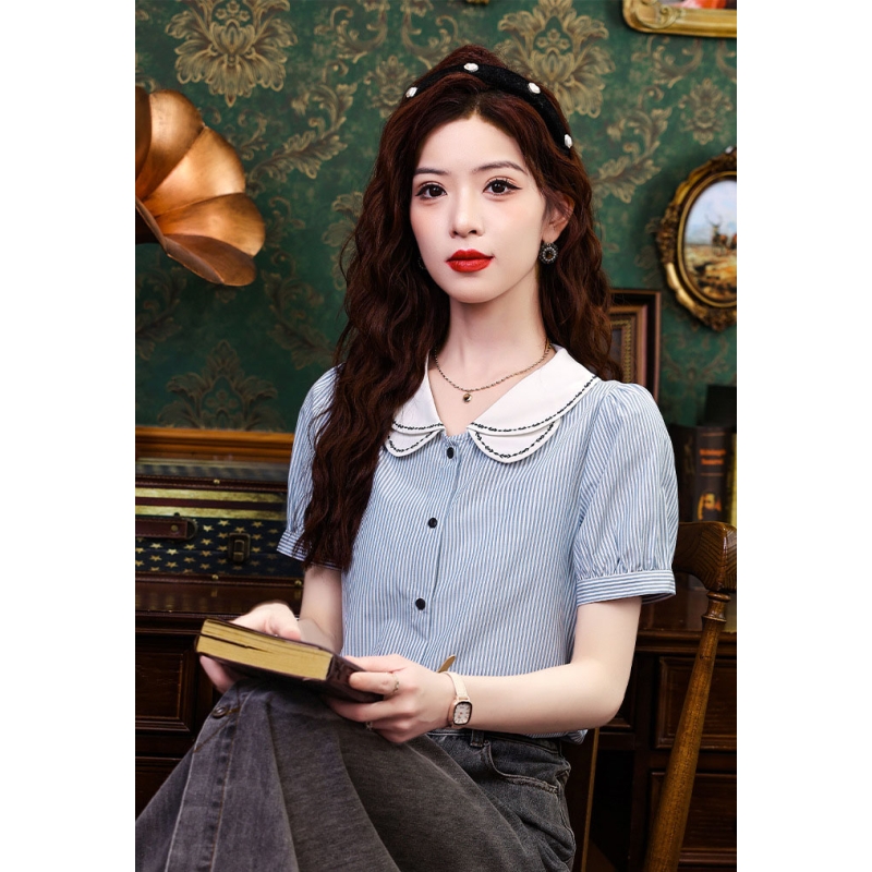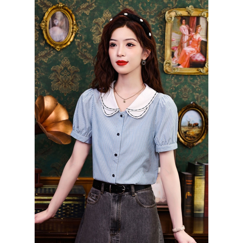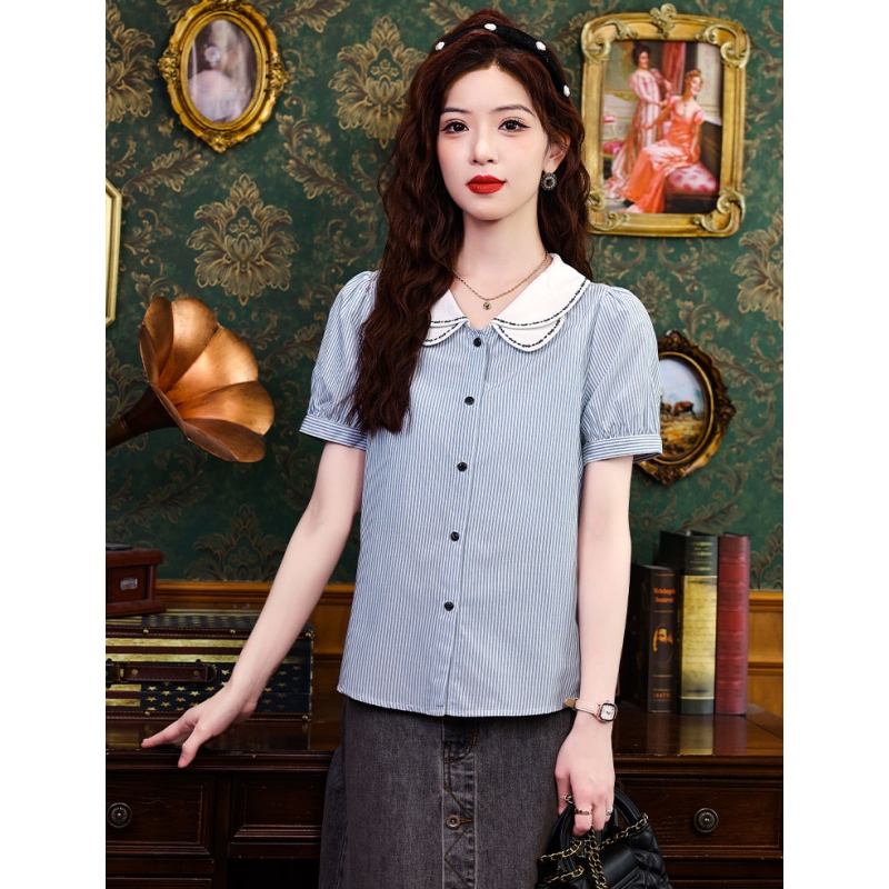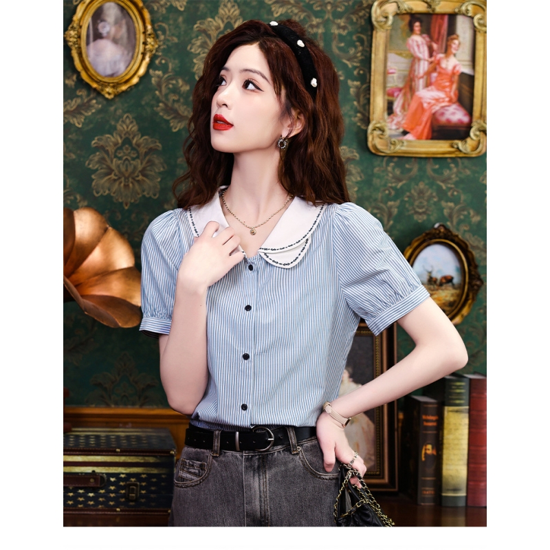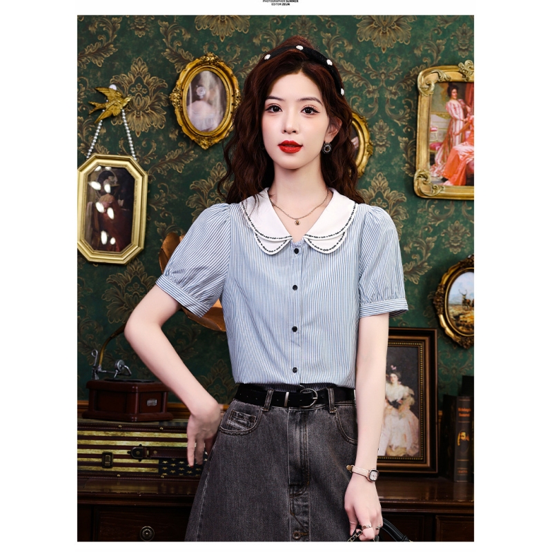 Kemeja wanita import motif salur T8747