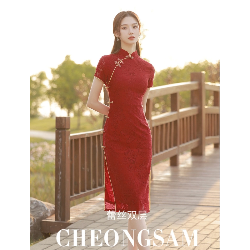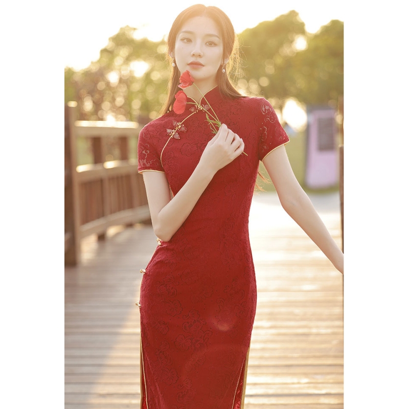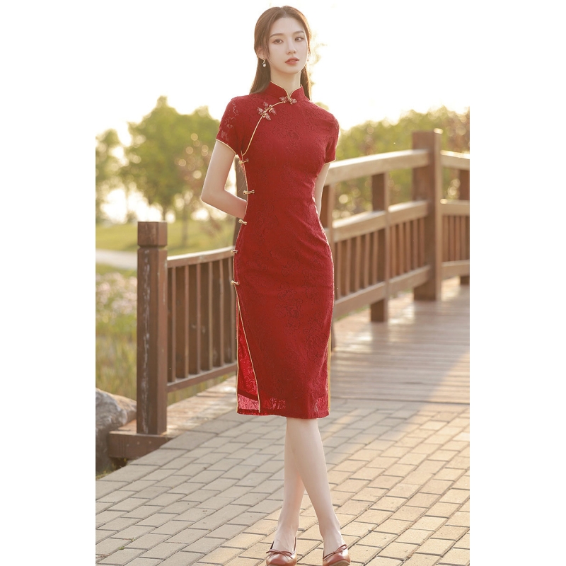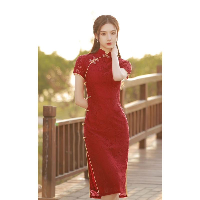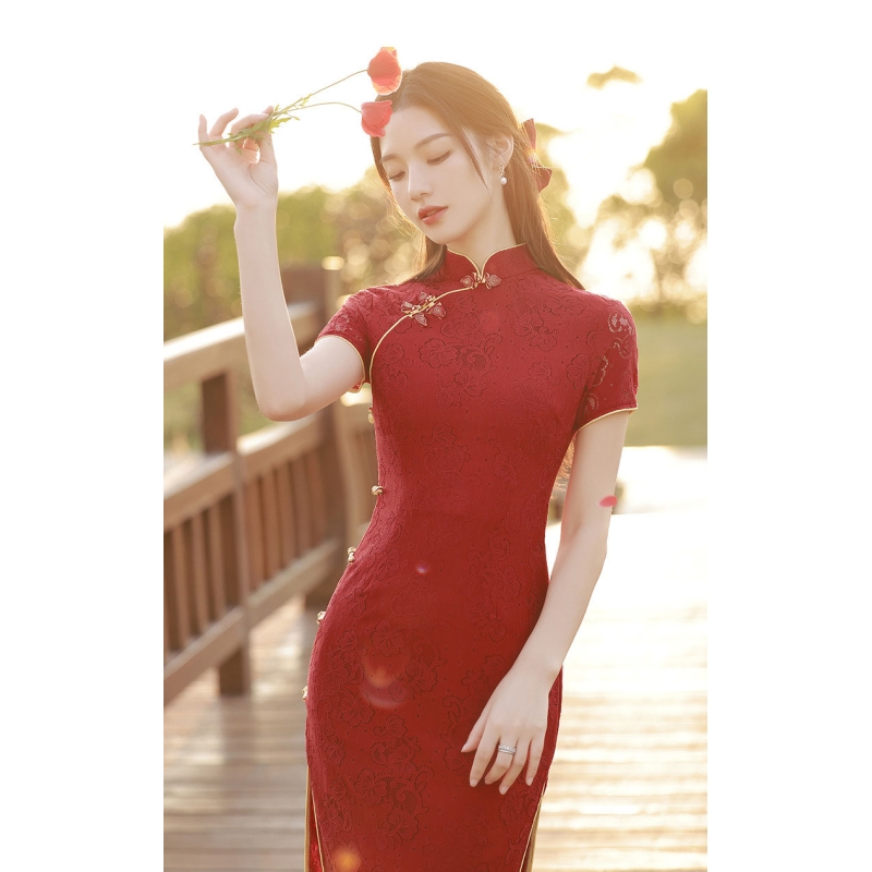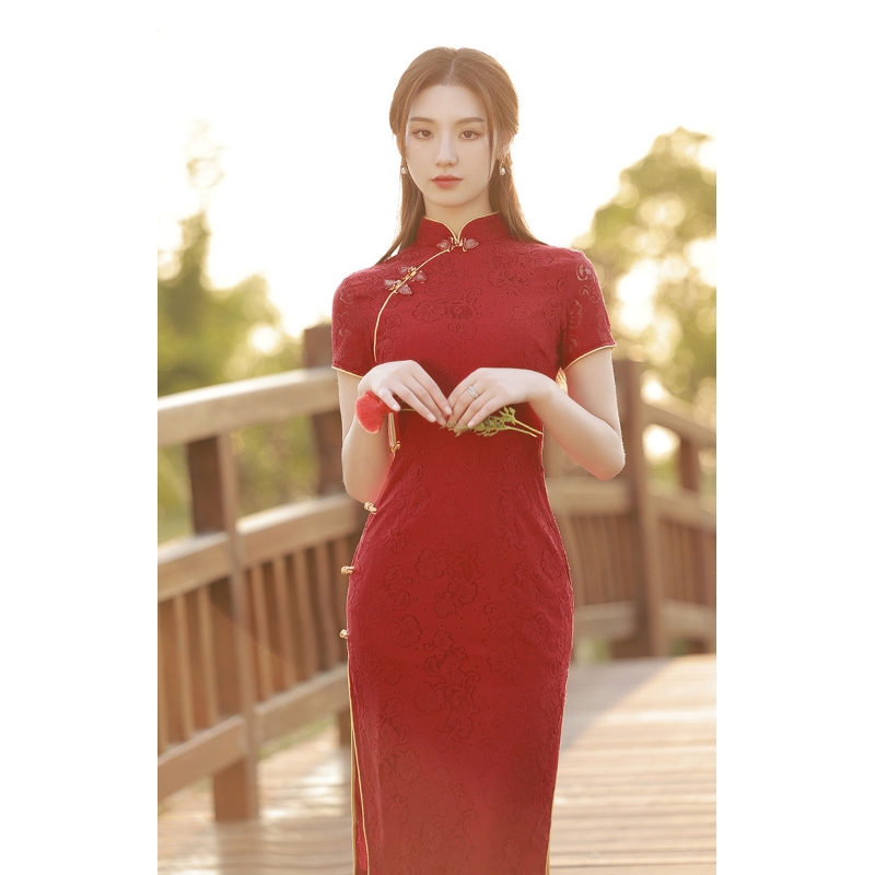 dress cheongsam merah wanita import D8502