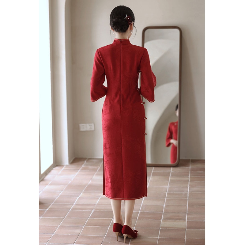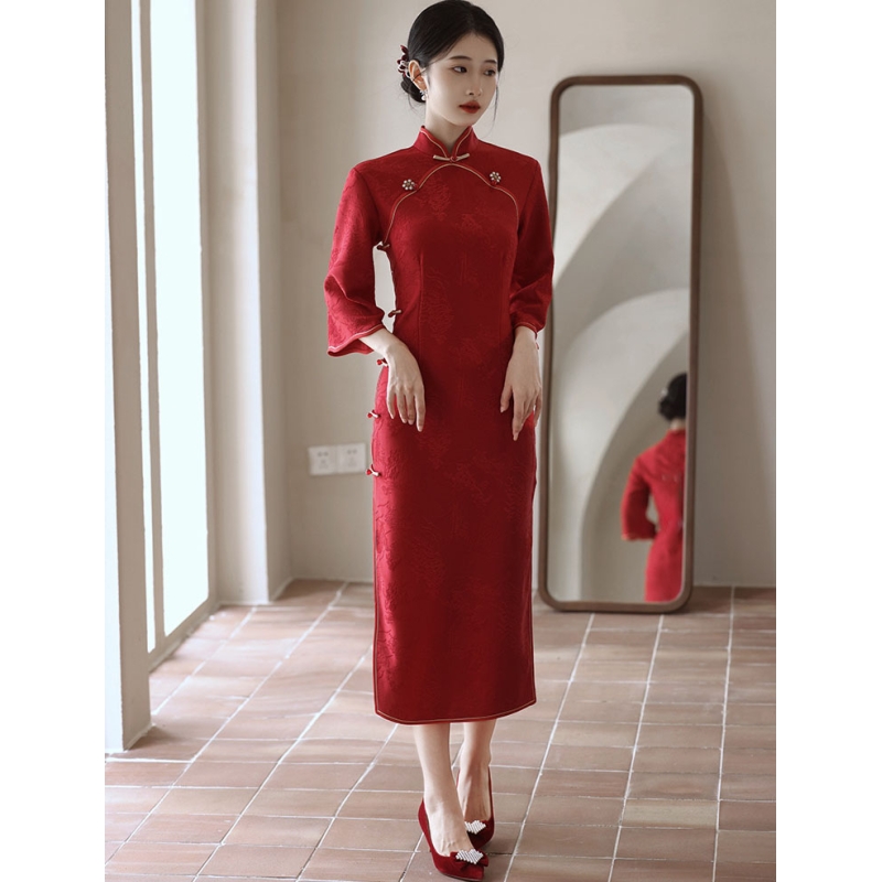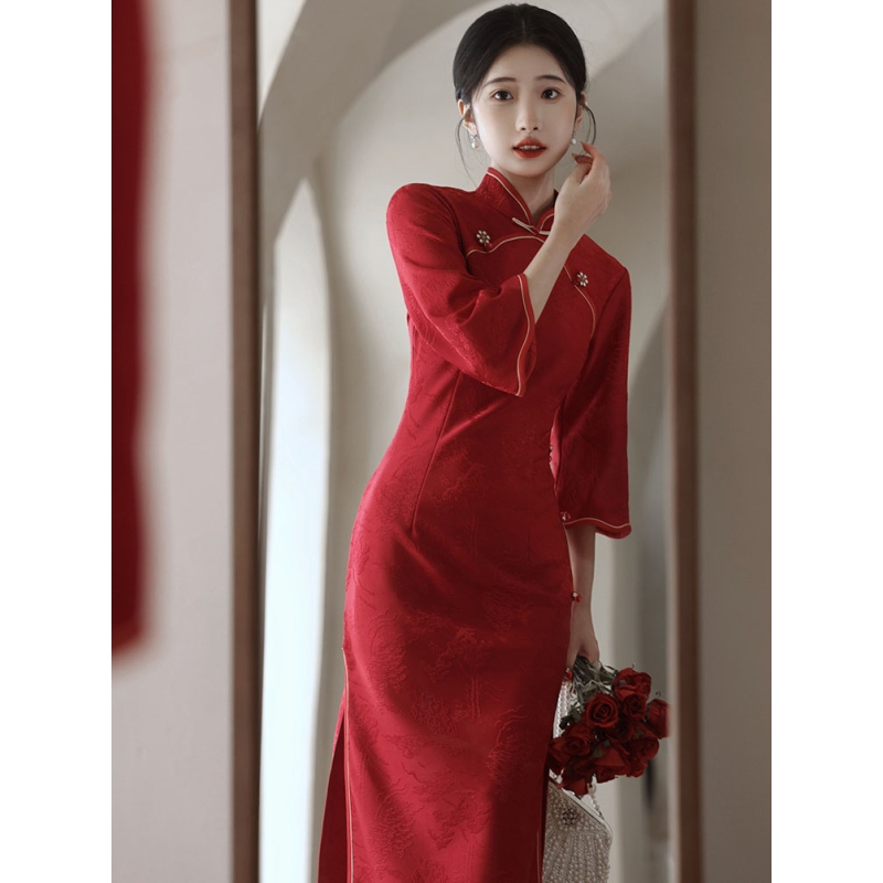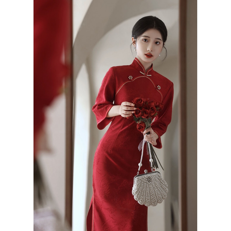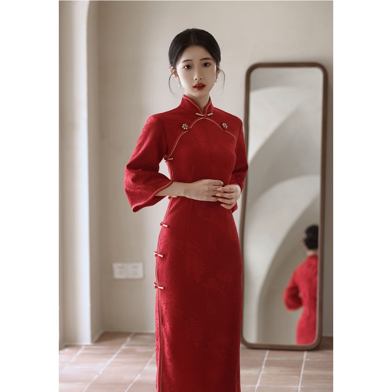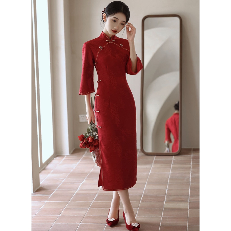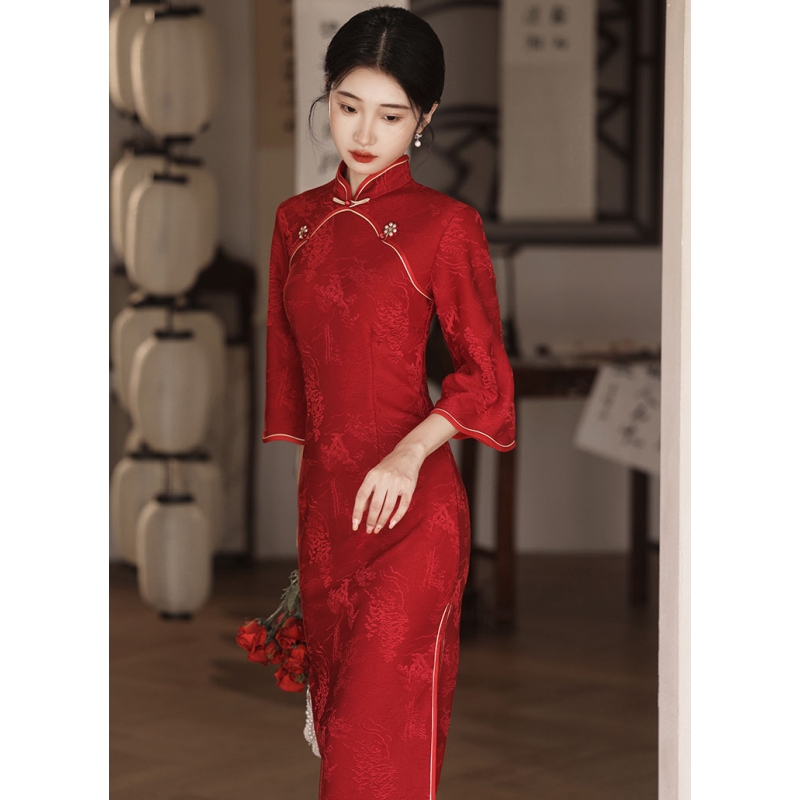 dress cheongsam merah wanita import D8512