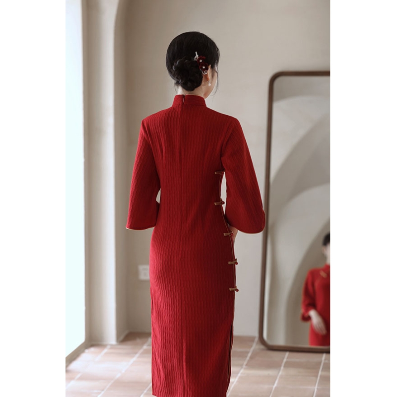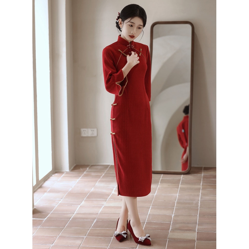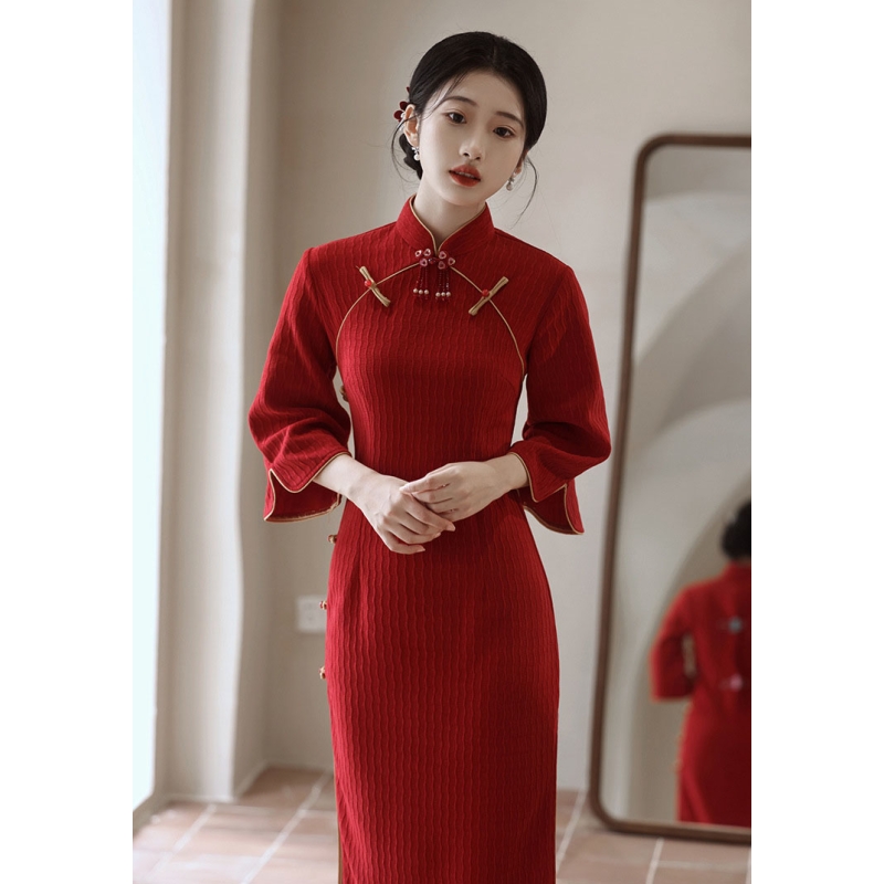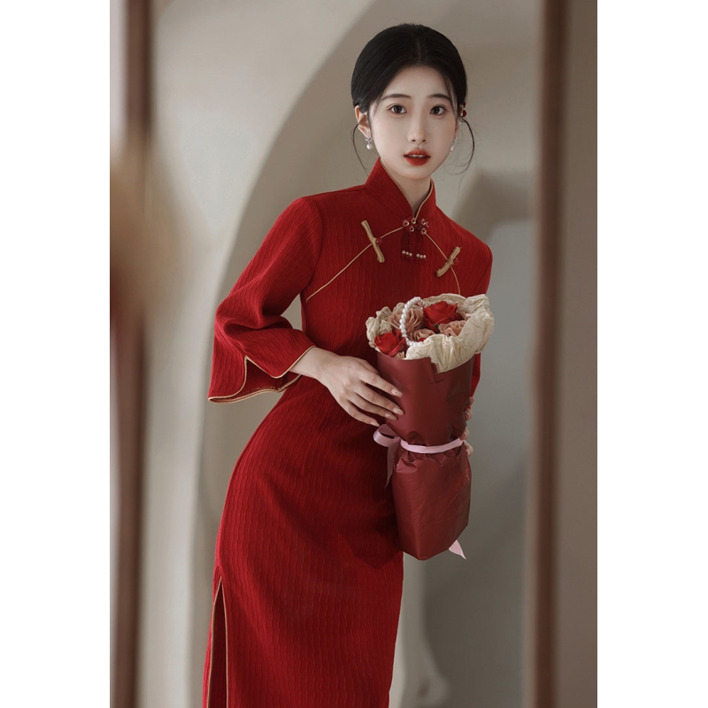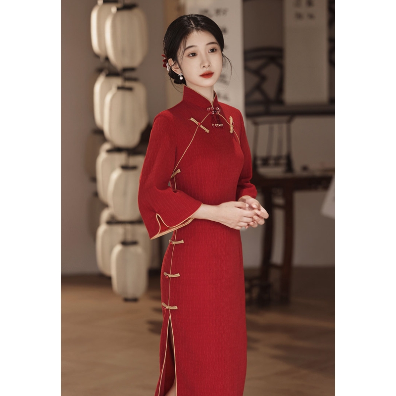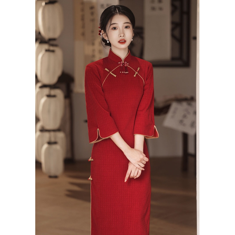 dress cheongsam merah wanita import D8521